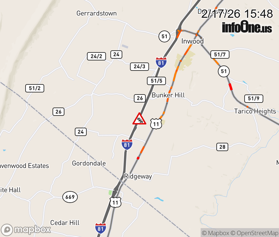 Vehicle Fire on I-81N at Mile Marker 2.0. Updated: Tue 2/17/26 3:48 PM EST ![]() Updated: Tue 2/17/26 3:48 PM EST |