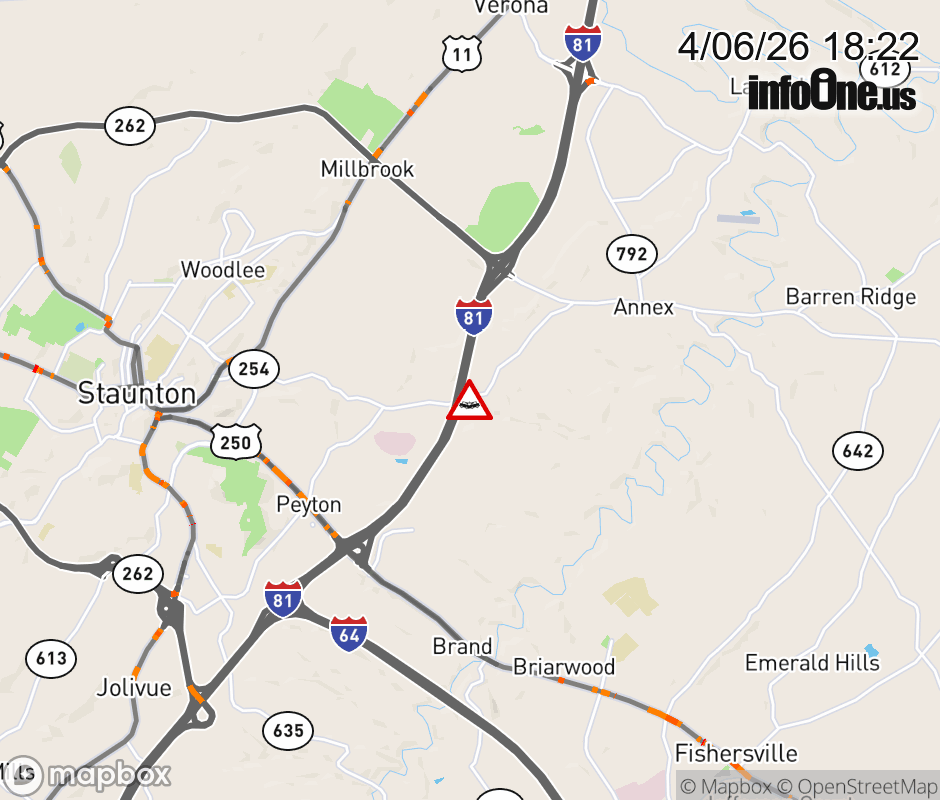 On VA-254 in the County of Augusta, in the vicinity of Overlook Rd; Valley View Rd; County/City/Town Line: STAUNTON, motorists can expect delays due to a vehicle crash. All east lanes are closed. ![]() |