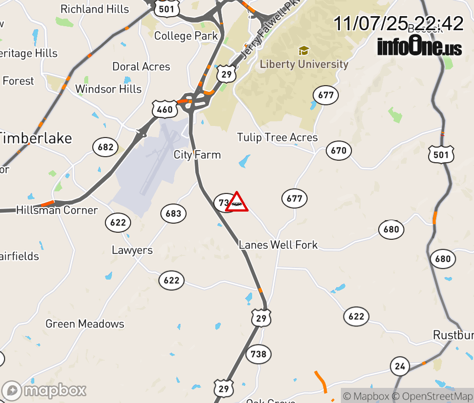 On Rt. 738 North in the County of Campbell, in the vicinity of Wards Rd; US-29N, motorists can expect delays due to a vehicle crash. Lane closures exist. ![]() |
