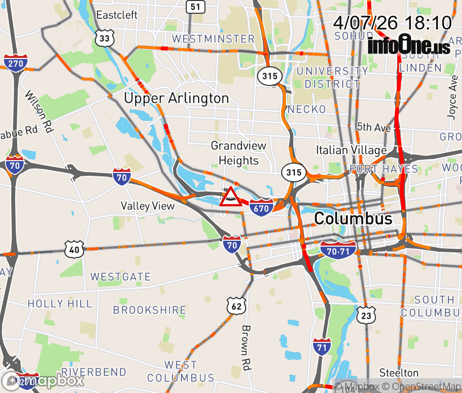 The 2 left lanes are blocked on I-670 West at Grandview Ave, due to a crash. Updated: Tue 4/7/26 6:10 PM EDT ![]() Updated: Tue 4/7/26 6:10 PM EDT |