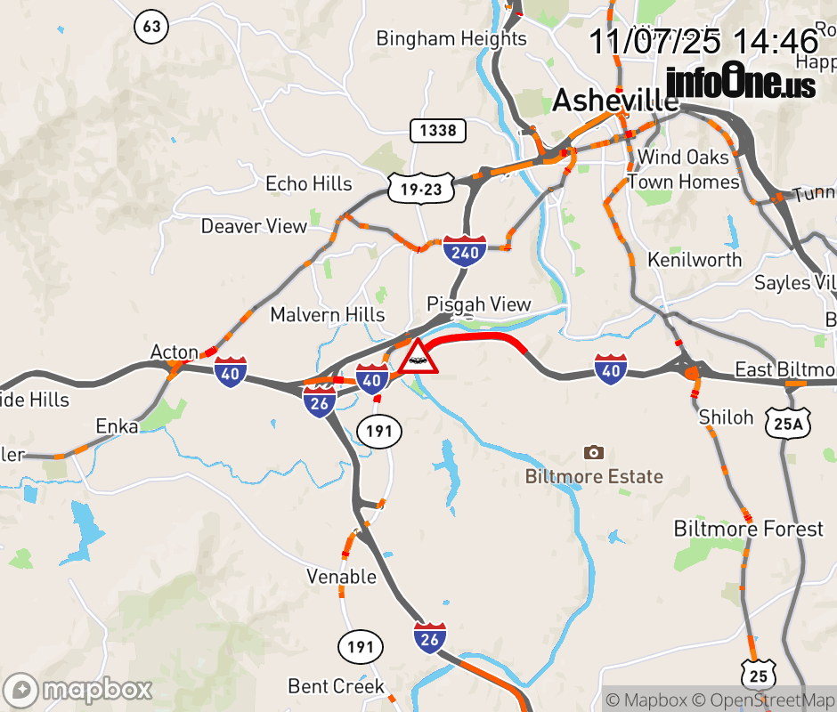 The right shoulder is closed before Exit 47, NC 191 (Brevard Rd).