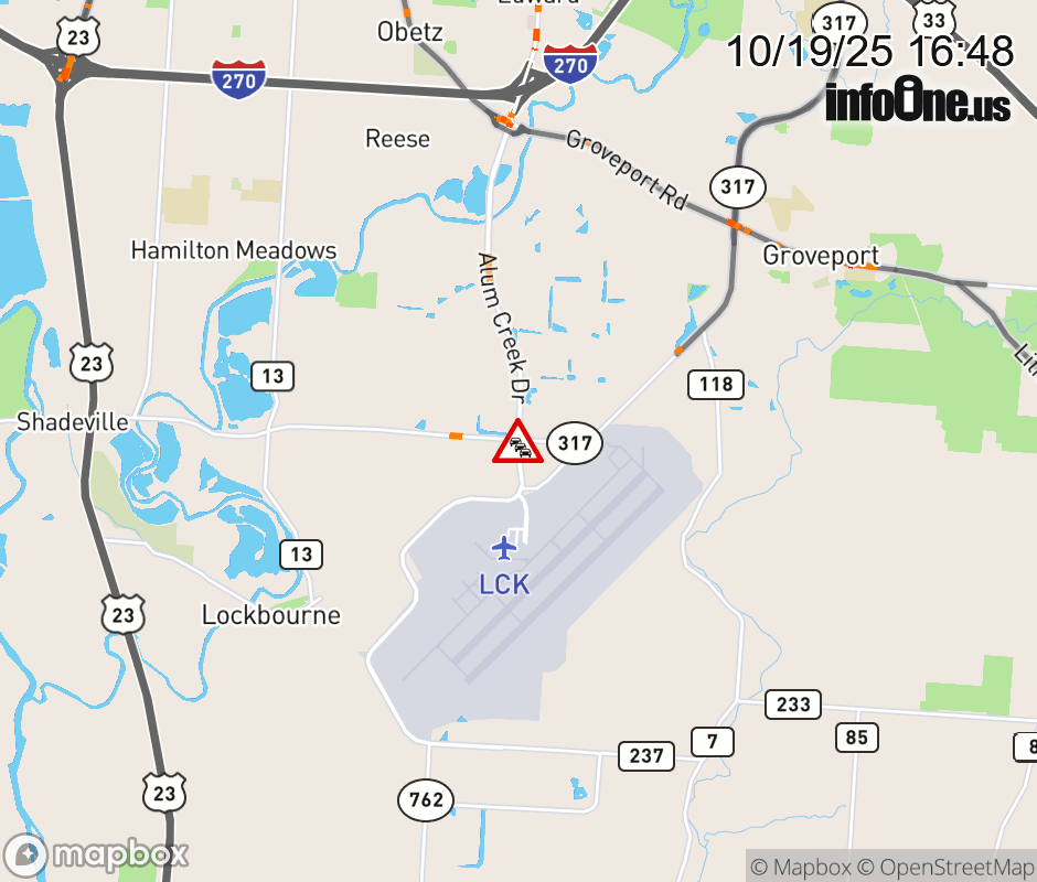 SR-317 CLOSED in BOTH DIRECTIONS from Shook Rd to Alum Creek Dr (MM: 3), due to fire. Use alternate route. ![]() |