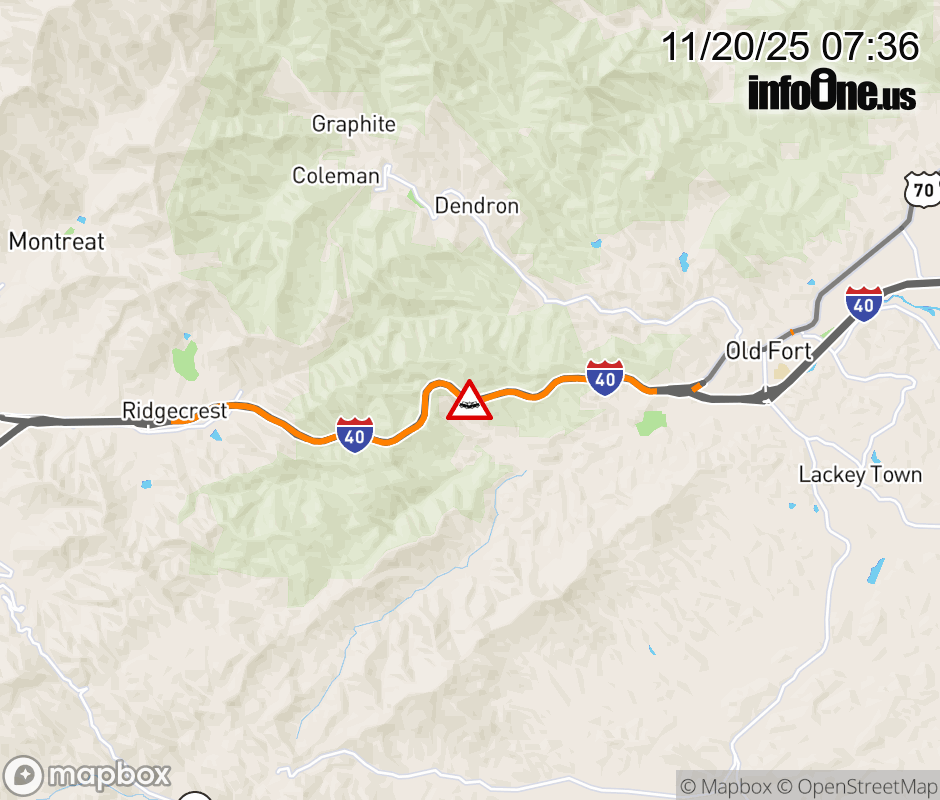 The right lane is closed three miles west of Exit 72, US 70 (West Main Street). ![]() |