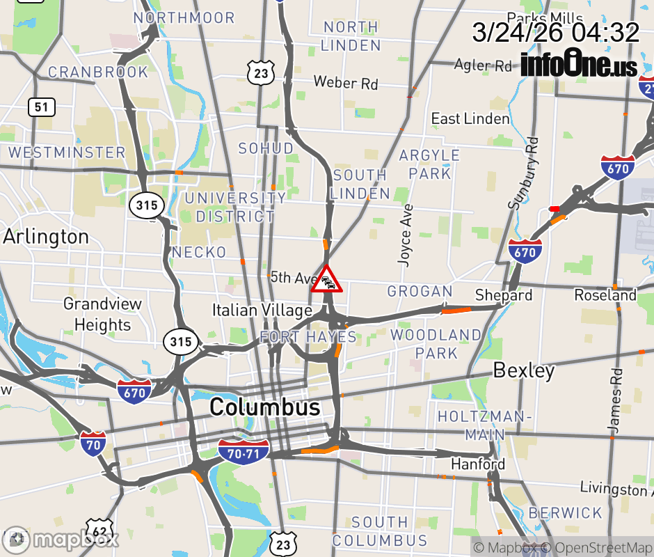 The left lane is blocked on I-71 North beyond I-670 West, due to repairs/maintenance. ![]() |