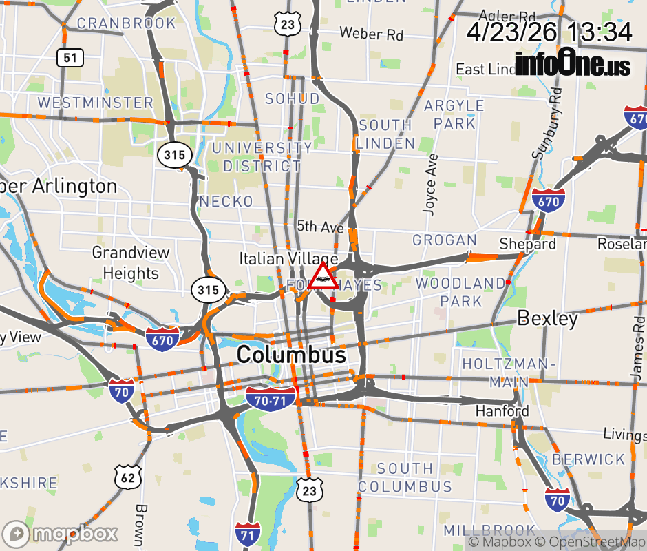 The left shoulder is blocked on I-670 West at High St/US-23 S/Third St, due to a crash. ![]() |