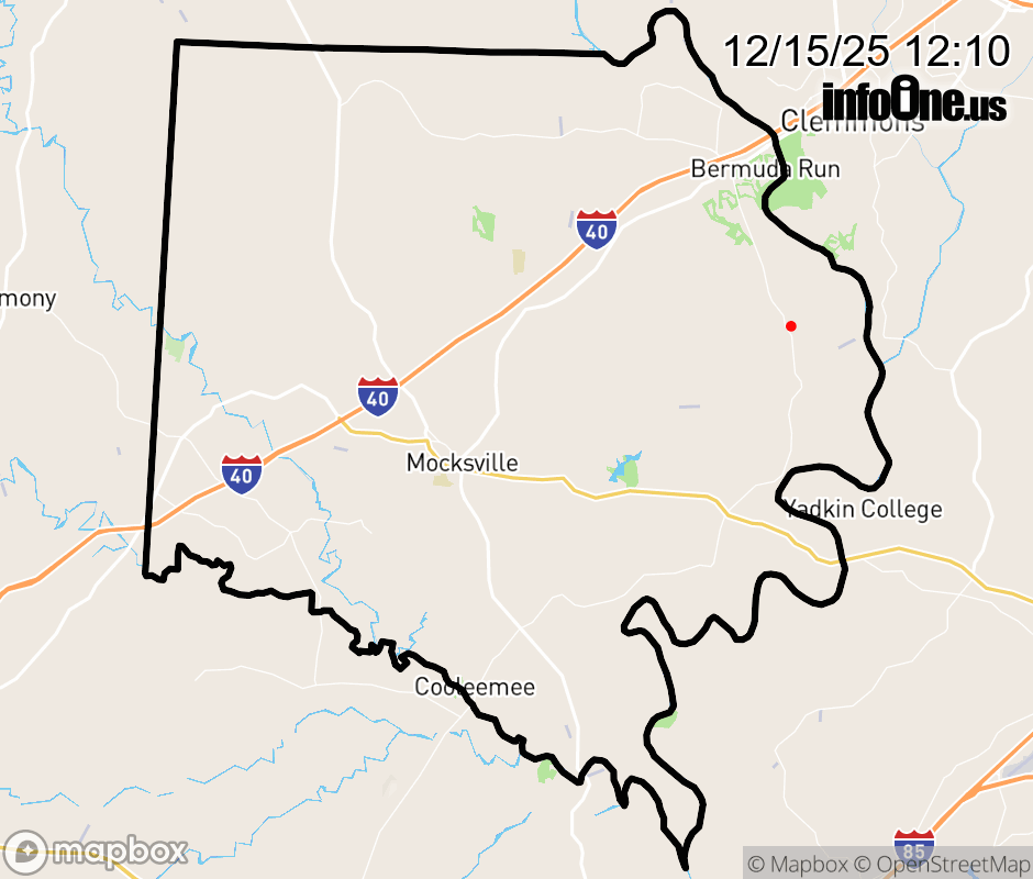 Canceled 12/15/25 1:20 PM Davie County has 1 power outage affecting 1 customer. Duke Energy 1 without power Estimated repair: Mon 3:45 PM Updated: Mon 12/15/25 12:10 PM EST ![]() Updated: Mon 12/15/25 12:10 PM EST |