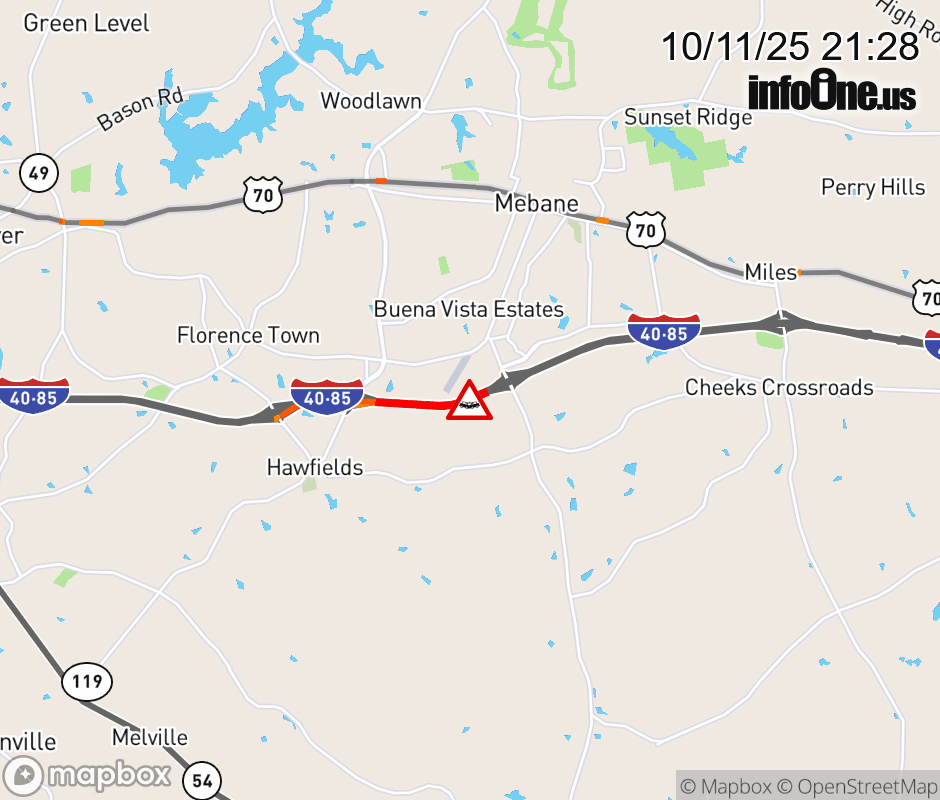 The right shoulder is closed 1-mile past Exit 153 (NC-119). Updated: Sat 10/11/25 9:28 PM EDT ![]() Updated: Sat 10/11/25 9:28 PM EDT |