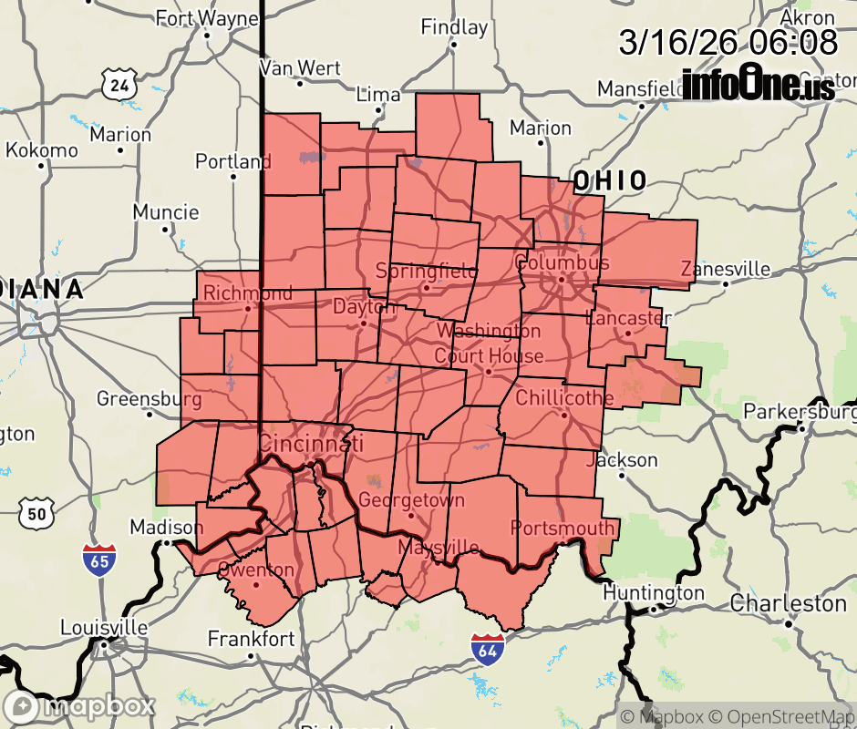 Canceled 3/16/26 1:00 PM Special Weather Statement issued March 16 at 6:07AM EDT by NWS Wilmington OH Scattered snow showers will become more widespread through this afternoon and then likely linger into this evening before tapering off. The snow showers will be capable of causing brief periods of reduced visibilities, especially this afternoon. In addition, brisk conditions will prevail with west winds gusting in the 30 to 40 mph range today. Light snow accumulations will be possible, mainly on grassy and elevated surfaces. While roads will remain mostly wet during the daytime hours, some slick spots may develop toward sunset as temperatures begin to drop below freezing. Please be prepared for the changing weather conditions today and the potential for reduced visibilities when driving. ![]() |