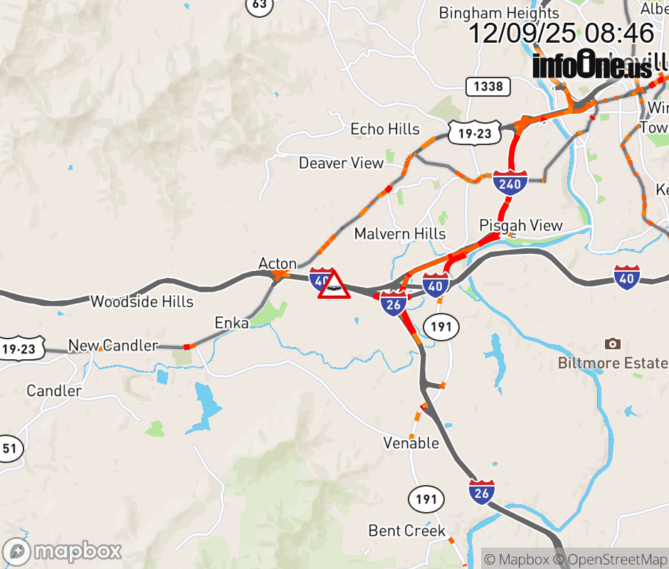 The left lane is closed after Exit 44, US 19 (Smokey Park Highway). ![]() |