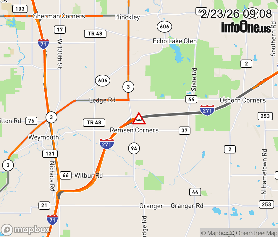 The left shoulder is blocked on I-271 North beyond SR-94, due to a crash. ![]() |