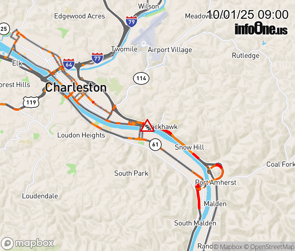 In Kanawha County there is a Congestion-Delay on I-77N at Mile Marker 98. ![]() |