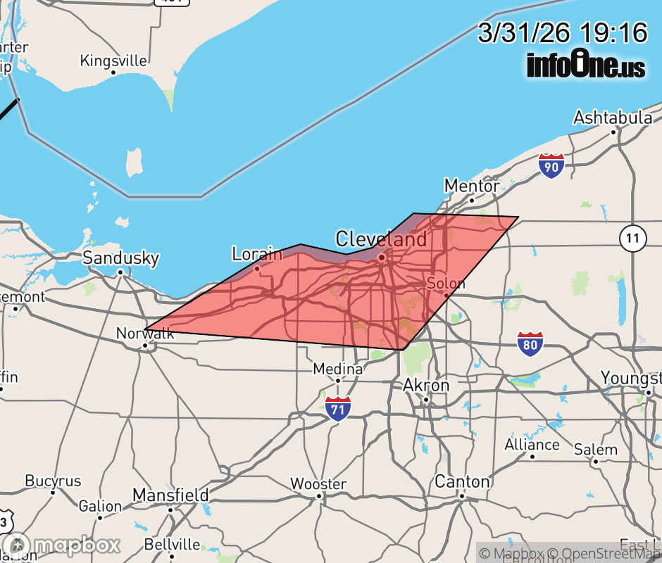 Canceled 3/31/26 7:42 PM Severe Thunderstorm Warning issued March 31 at 7:15PM EDT until March 31 at 8:00PM EDT by NWS Cleveland OH SVRCLE The National Weather Service in Cleveland has issued a * Severe Thunderstorm Warning for... Erie County in north central Ohio... West central Geauga County in northeastern Ohio... Cuyahoga County in northeastern Ohio... Northeastern Medina County in northeastern Ohio... Southwestern Lake County in northeastern Ohio... Northwestern Summit County in northeastern Ohio... Lorain County in north central Ohio... * Until 800 PM EDT. * At 715 PM EDT, severe thunderstorms were located along a line extending from 6 miles northwest of Lakewood to near Wakeman, moving east at 55 mph. HAZARD...60 mph wind gusts. SOURCE...Radar indicated. IMPACT...Expect damage to trees and power lines. * Locations impacted include... Cleveland, Lorain, Elyria, Willowick, Vermilion, Western Vermilion, Chardon, Parma, Lakewood, Euclid, Cleveland Heights, Strongsville, Brunswick, Westlake, North Royalton, North Ridgeville, Solon, Avon Lake, Willoughby, and Twinsburg. ![]() |