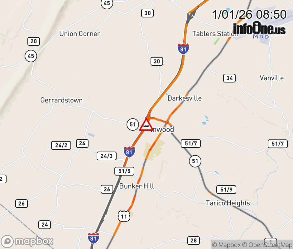 Canceled 1/1/26 10:58 AM Location: I-81 at MM 4.8, WV Accident.