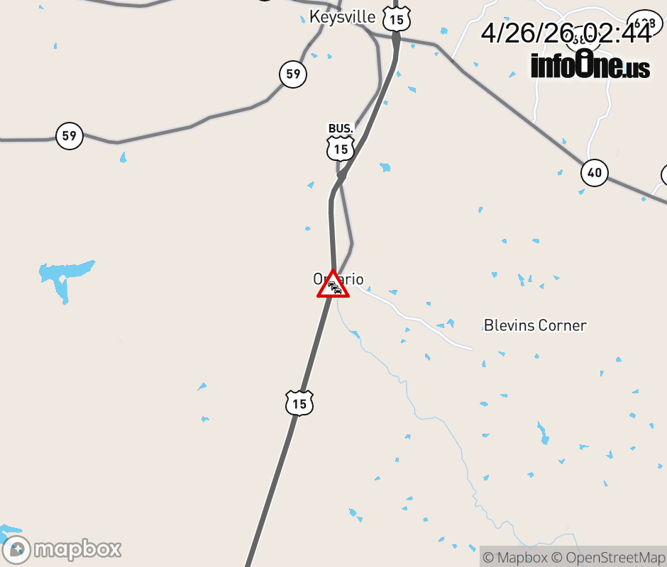 On BUS US-15 North in the County of Charlotte, in the vicinity of BUS US-15S (6 Keysville/Charlotte), motorists can expect delays due to weather. Lane closures exist. Updated: Sun 4/26/26 2:44 AM EDT ![]() Updated: Sun 4/26/26 2:44 AM EDT |