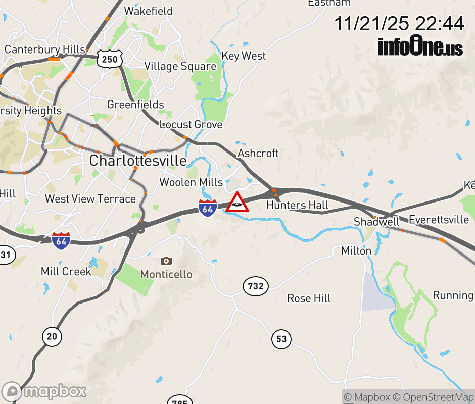 On I-64 West at mile marker 123.8 in the County of Albemarle, motorists can expect delays due to a vehicle crash. Updated: Fri 11/21/25 10:44 PM EST ![]() Updated: Fri 11/21/25 10:44 PM EST |