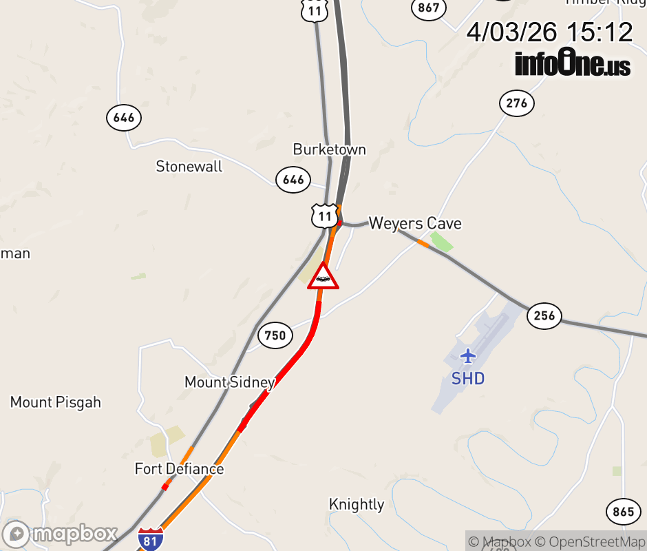 On I-81 North at mile marker 234.5 in the County of Augusta, motorists can expect delays due to a multi-vehicle crash. Updated: Fri 4/3/26 3:12 PM EDT ![]() Updated: Fri 4/3/26 3:12 PM EDT |