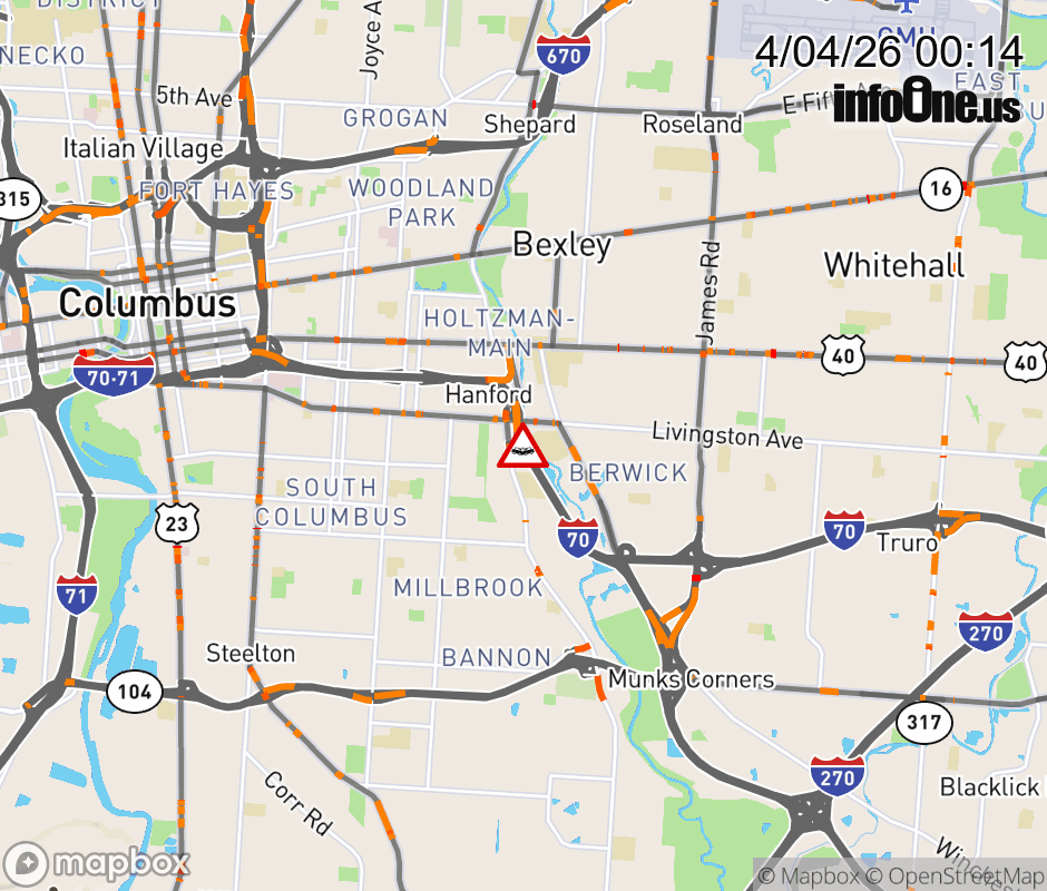 The right shoulder is blocked on I-70 West at US-33/Livingston Ave, due to a crash. ![]() |