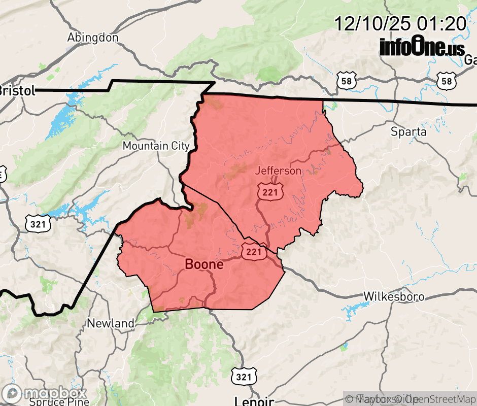 Canceled 12/10/25 12:00 PM Winter Weather Advisory issued December 10 at 1:19AM EST until December 11 at 10:00AM EST by NWS Blacksburg VA * WHAT... Snow and blowing snow. Total snow accumulations of 1 to 3 inches. Winds gusting as high as 40 mph. * WHERE... Ashe and Watauga Counties. * WHEN... From 1 PM this afternoon to 10 AM EST Thursday. * IMPACTS... Plan on slippery road conditions. The hazardous conditions could impact the Wednesday evening and Thursday morning commutes. Gusty winds could bring down tree branches. * ADDITIONAL DETAILS... The snow may begin as rain. As temperatures fall this afternoon the rain is expected to change to snow with poor travel conditions expected tonight. ![]() |