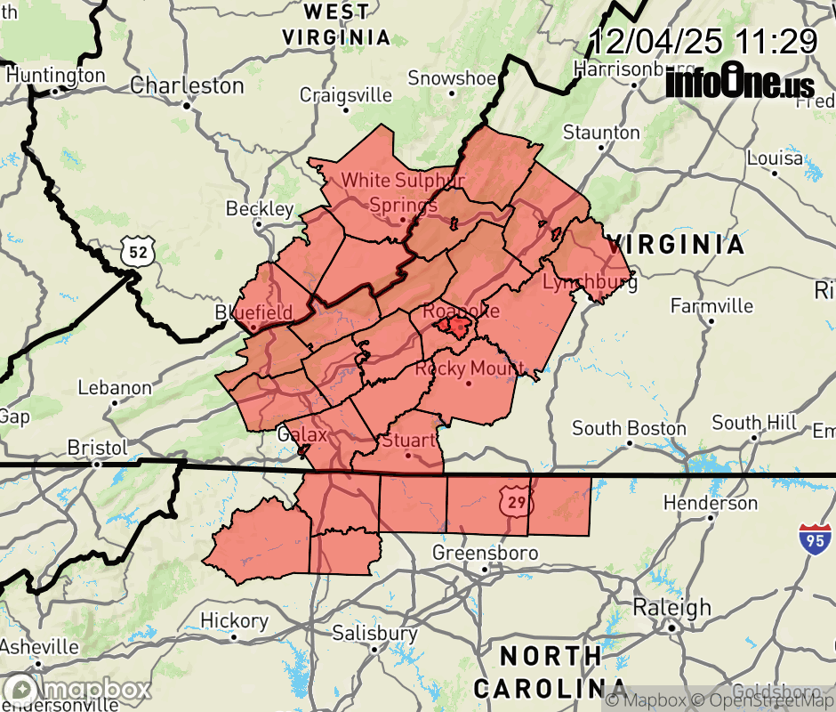 Canceled 12/4/25 2:46 PM Winter Weather Advisory issued December 4 at 11:27AM EST until December 5 at 7:00PM EST by NWS Blacksburg VA An area of low pressure will bring snow to the region tonight and Friday. * WHAT... Wet snow expected. Total snow accumulation of 1 to 3 inches. Snow may end as freezing drizzle Friday afternoon with potential for a glaze of ice in addition to the snow. * WHERE... Portions of north central and northwest North Carolina piedmont. * WHEN... From midnight tonight to 7 PM EST Friday. * IMPACTS... Plan on slippery road conditions. The hazardous conditions are expected to impact the Friday morning commute. ![]() |