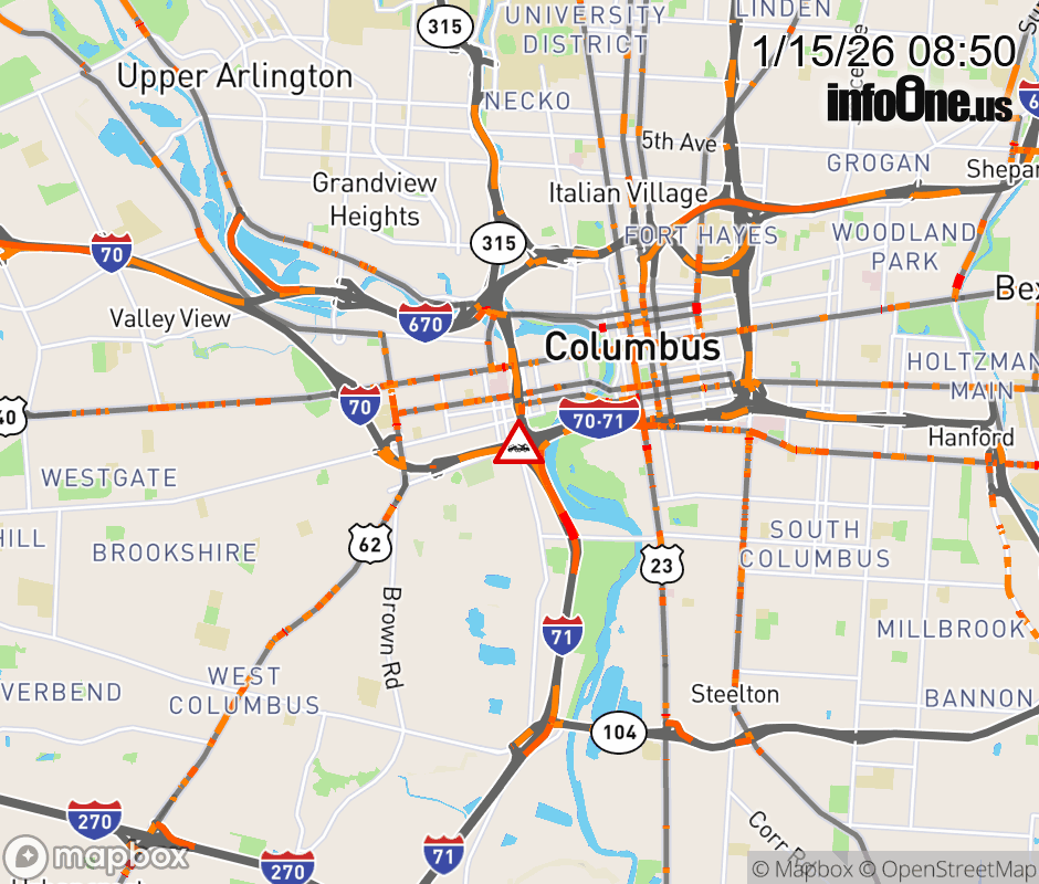 The left lane is blocked on I-70 West beyond Rich St/Town St, due to a disabled vehicle. ![]() |