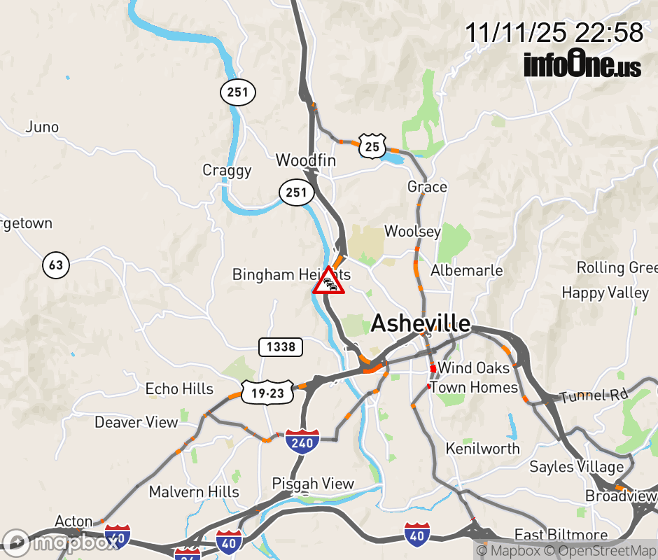 The right lane is closed after Exit 25 (NC 251/Broadway Street). ![]() |