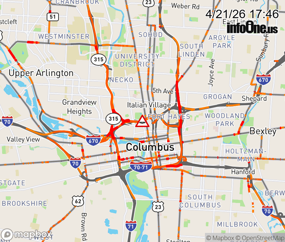 The right shoulder is blocked on I-670 West at Neil Ave/Goodale St, due to a crash. ![]() |
