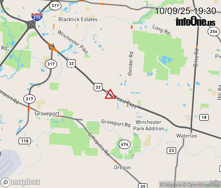 The left lane is blocked on US-33 West at Rager Rd, due to repairs/maintenance. ![]() |