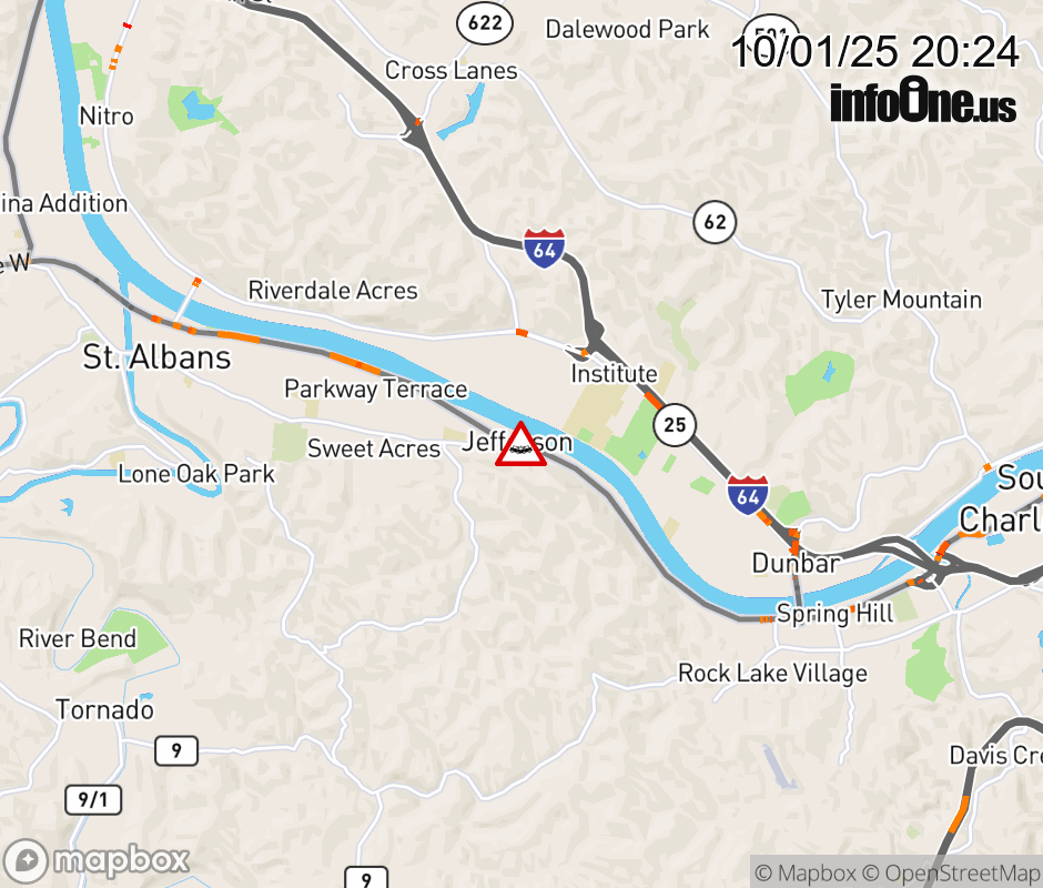 In Kanawha County there is a Vehicle Crash on US-60W at Mile Marker 7.02. (6738 MacCorkle Ave SW, Jefferson). Current lanes impacted: RIGHT LANE. ![]() |