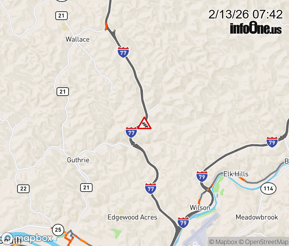 Vehicle Fire on I-77N at Mile Marker 107.0. The northbound right lane is closed. Updated: Fri 2/13/26 7:42 AM EST ![]() Updated: Fri 2/13/26 7:42 AM EST |