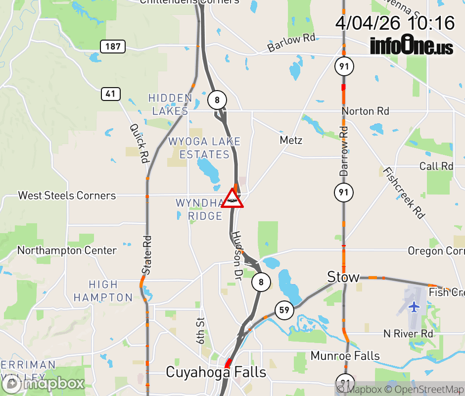 All lanes are closed on Ramp from E Steels Corners Rd to OH-8 S at OH-8 S, due to a crash. ![]() |