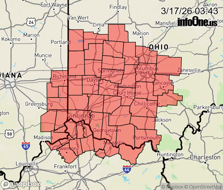 Canceled 3/17/26 9:00 AM Special Weather Statement issued March 17 at 3:42AM EDT by NWS Wilmington OH Scattered snow showers will continue through mid morning. With temperatures well below freezing, light snow accumulations will combine with lingering black ice from overnight, to create some slick spots on area roadways. In addition, brisk westerly winds will gust in the 25 to 35 mph range this morning. If traveling this morning, allow for some extra time to reach your destination. Be prepared for slick conditions, especially on bridges and overpasses as well as untreated surfaces. ![]() |