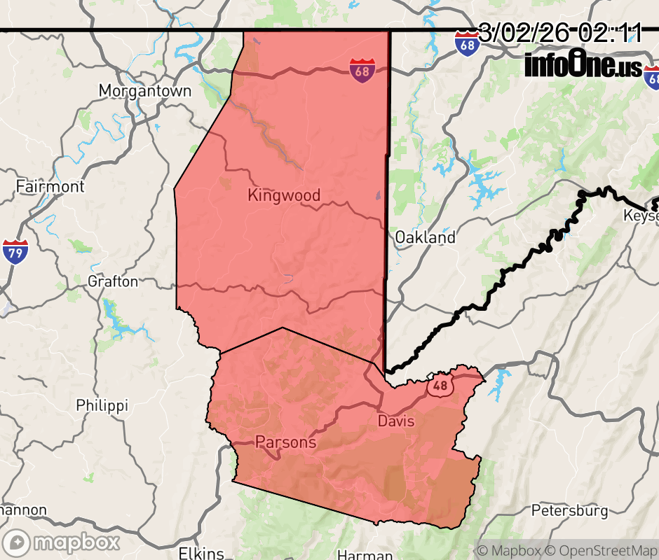 Canceled 3/2/26 12:07 PM Winter Weather Advisory issued March 2 at 2:10AM EST until March 3 at 4:00AM EST by NWS Pittsburgh PA * WHAT... Snow expected early. Total snow accumulations 2 to 4 inches. Ice developing Monday evening into Monday night. Ice accumulations up to one tenth of an inch. * WHERE... Eastern Preston and Eastern Tucker Counties. * WHEN... From 7 AM this morning to 4 AM EST Tuesday. * IMPACTS... Plan on slippery road conditions. The hazardous conditions will impact the Monday morning and evening commutes. ![]() |