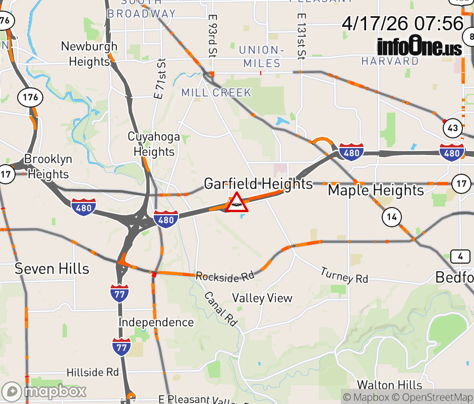 The right lane is blocked on I-480 West at Transportation Blvd/E 98th St, due to a crash. ![]() |