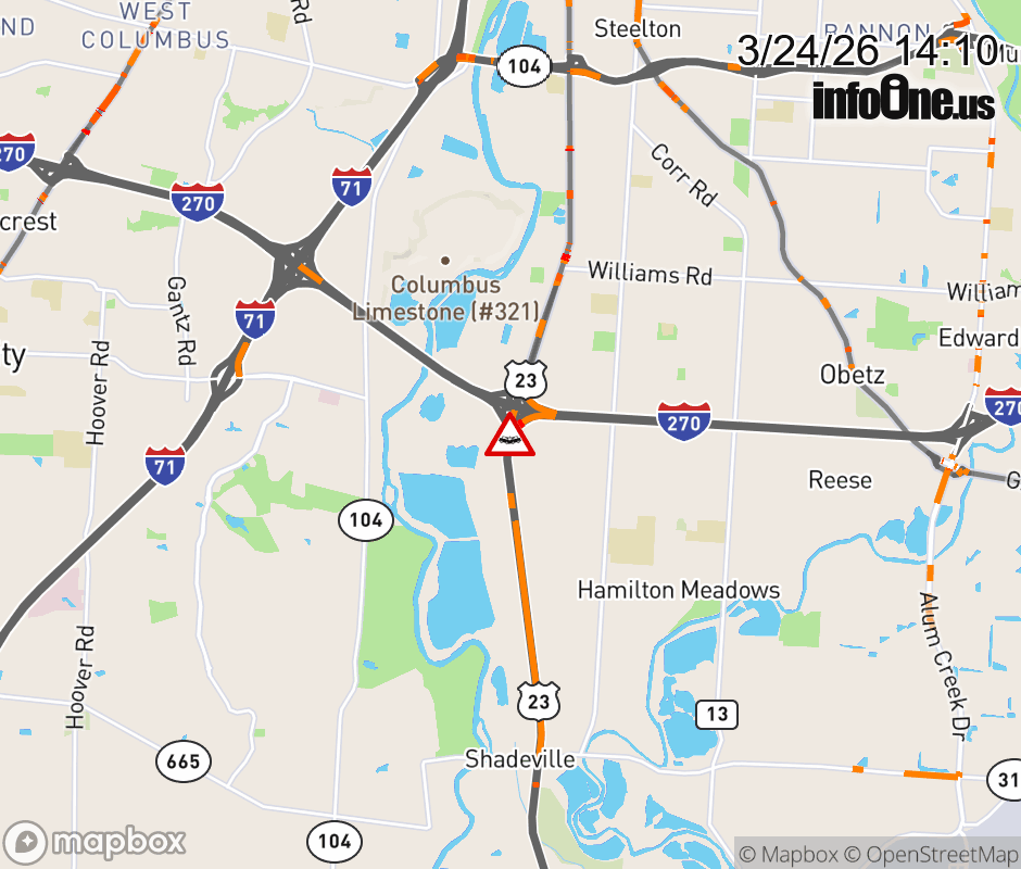 Ramp US-23 North to I-270 West CLOSED because of a crash. Updated: Tue 3/24/26 2:10 PM EDT ![]() Updated: Tue 3/24/26 2:10 PM EDT |