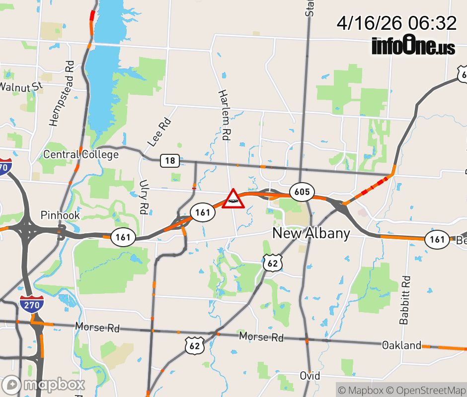 The left shoulder is blocked on SR-161 East beyond Hamilton Rd, due to a crash. ![]() |