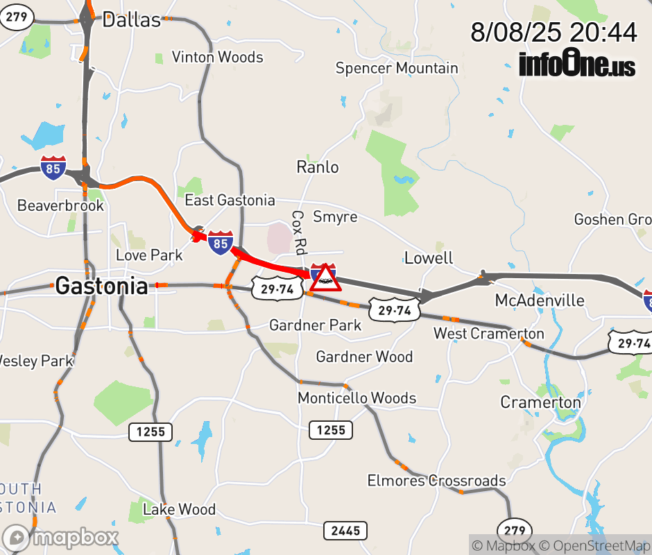 The left lane is closed past Exit 21 (Cox Road). Updated: Fri 8/8/25 8:44 PM EDT ![]() Updated: Fri 8/8/25 8:44 PM EDT |