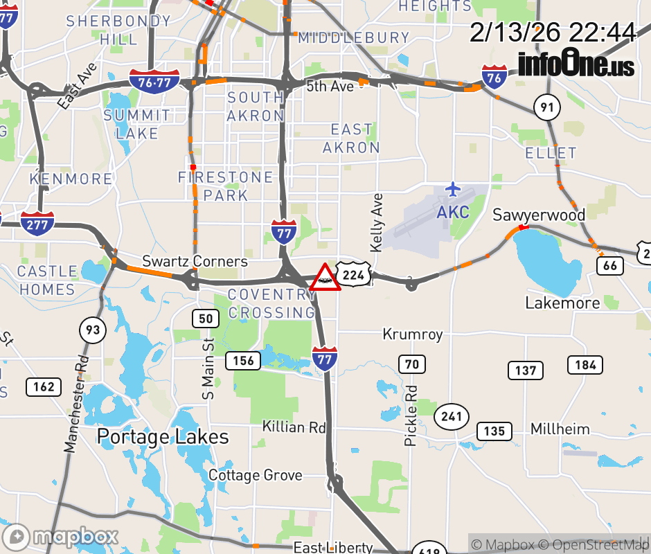 The left lane is blocked on US-224 East at I-77, due to a crash. ![]() |