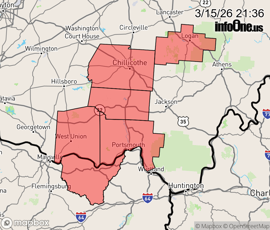 Canceled 3/16/26 2:27 AM Wind Advisory issued March 15 at 9:34PM EDT until March 16 at 8:00AM EDT by NWS Wilmington OH * WHAT... South winds 15 to 20 mph with gusts up to 50 mph becoming west southwest expected. * WHERE... In Kentucky, Lewis County. In Ohio, Hocking, Adams, Pike, Ross, and Scioto Counties. * WHEN... Until 8 AM EDT Monday. * IMPACTS... Gusty winds will blow around unsecured objects. Tree limbs could be blown down and a few power outages may result. ![]() |