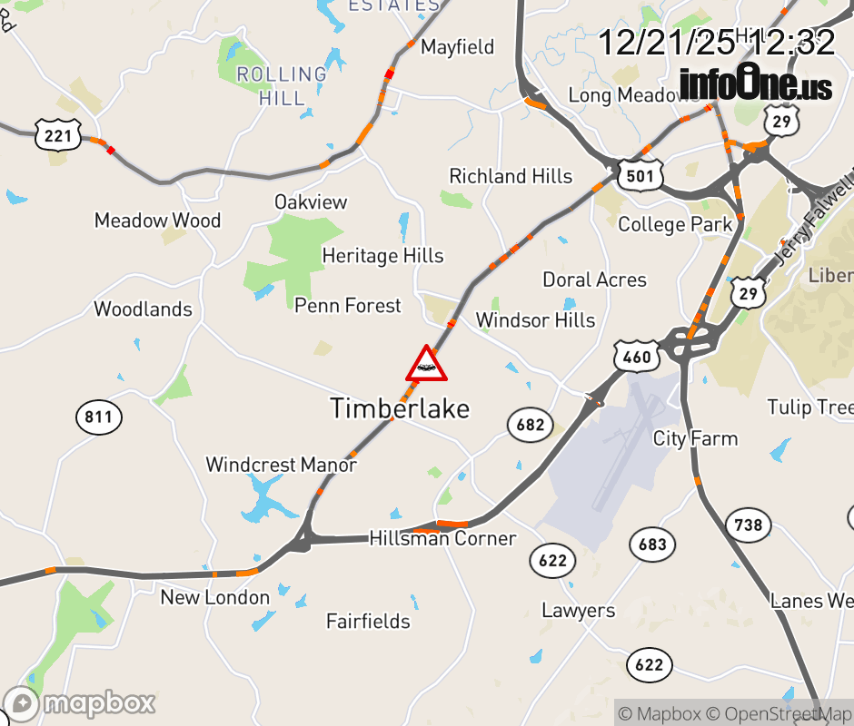 On BUS US-460 in the County of Campbell, in the vicinity of Powtan Dr; Rt. 859E/W (Campbell County), motorists can expect delays due to a vehicle crash. All west lanes are closed. Updated: Sun 12/21/25 12:32 PM EST ![]() Updated: Sun 12/21/25 12:32 PM EST |
