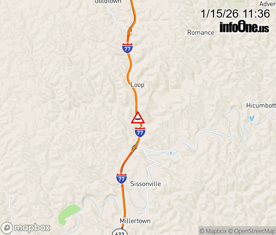 Canceled 1/15/26 12:06 PM Location: I-77 at MM 117.0, WV Accident.