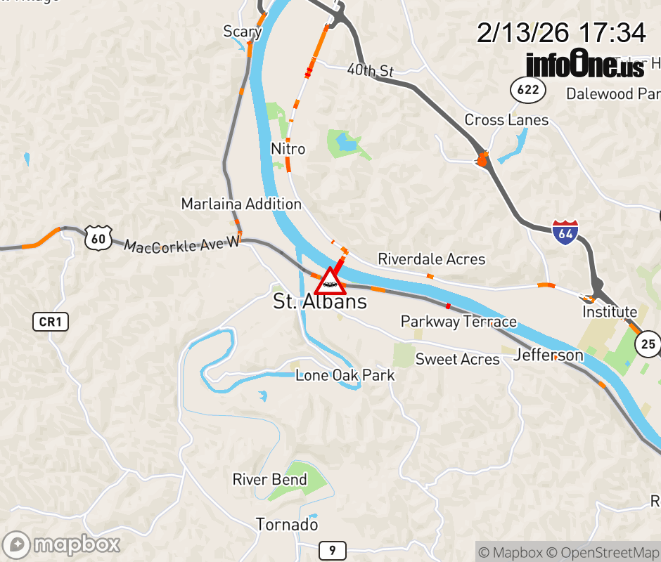 Vehicle Crash on US-60E @3rd St Saint Albans. The westbound left lane is closed. Updated: Fri 2/13/26 5:34 PM EST ![]() Updated: Fri 2/13/26 5:34 PM EST |