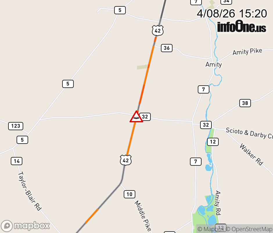Expect lane closures on US-42 in both directions at Price Hilliards Rd. (MM: 20.6), due to crash. Expect lane closures on US-42 in both directions at Price Hilliards Rd. (MM: 20.6), due to crash. ![]() |