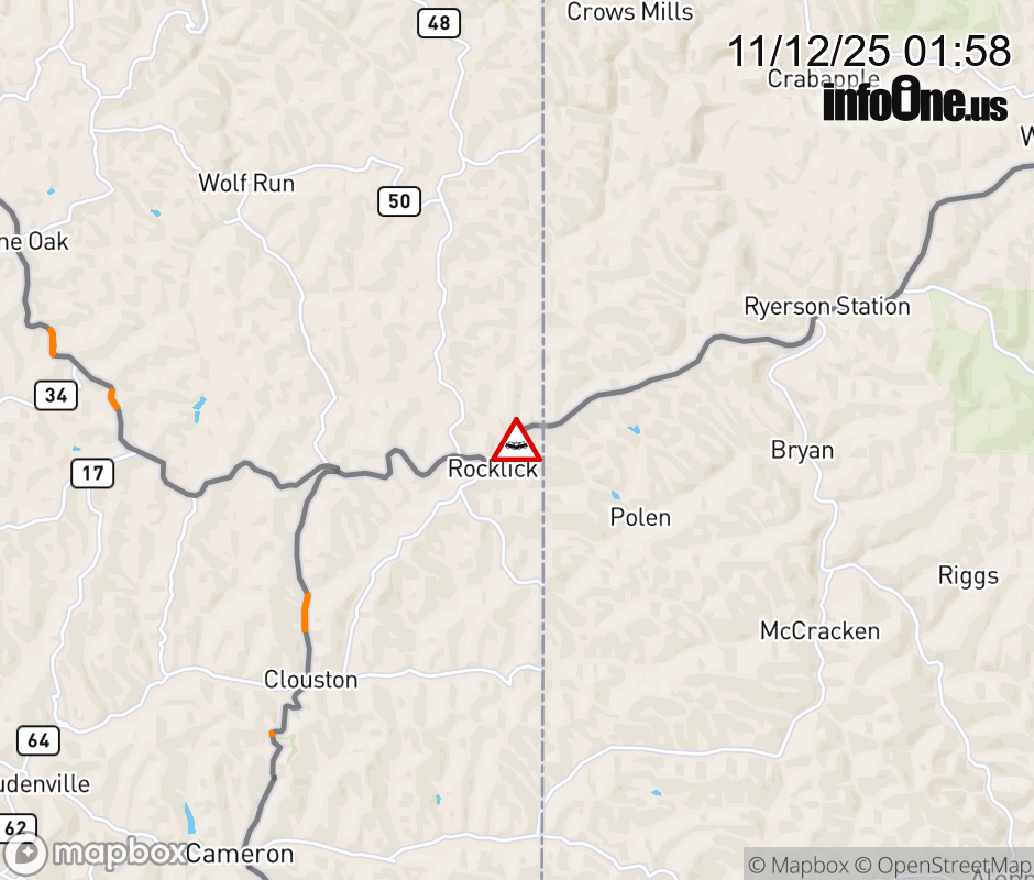 Vehicle Crash on WV-891 (1983 Rock Lick Rd, Cameron). ![]() |