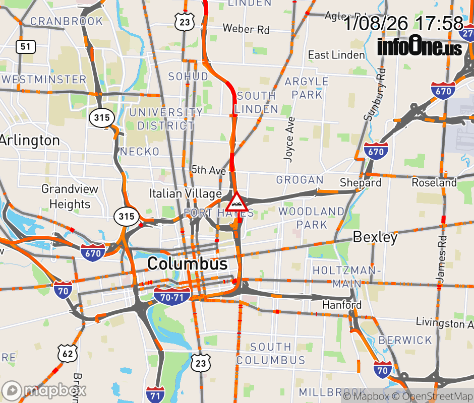 The right shoulder is blocked on I-71 North beyond I-670 West, due to a disabled vehicle. Updated: Thu 1/8/26 5:58 PM EST ![]() Updated: Thu 1/8/26 5:58 PM EST |