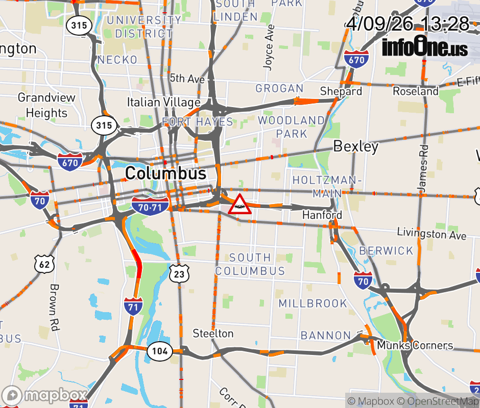 The right shoulder is blocked on Ramp I-70 West to I-71 North, due to a crash. Updated: Thu 4/9/26 1:28 PM EDT ![]() Updated: Thu 4/9/26 1:28 PM EDT |