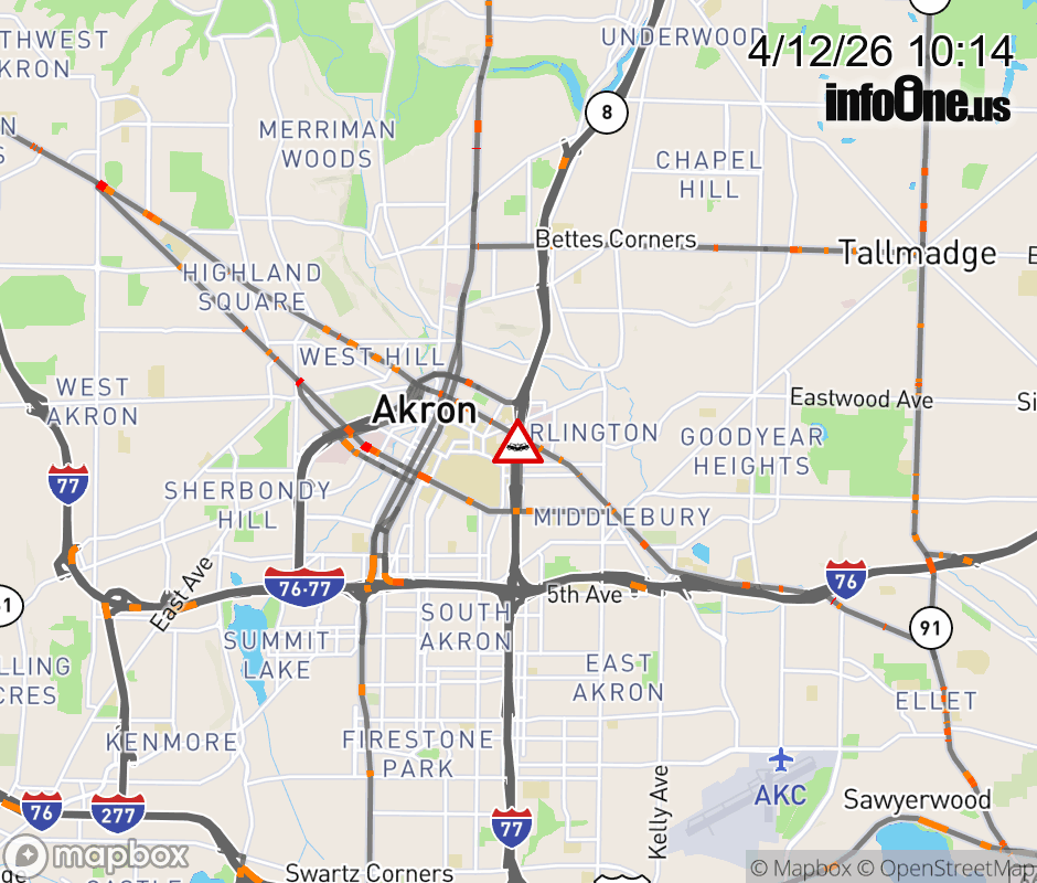 The left lane is blocked on SR-8 North at SR-59 West/Perkins St, due to a crash. Updated: Sun 4/12/26 10:14 AM EDT ![]() Updated: Sun 4/12/26 10:14 AM EDT |