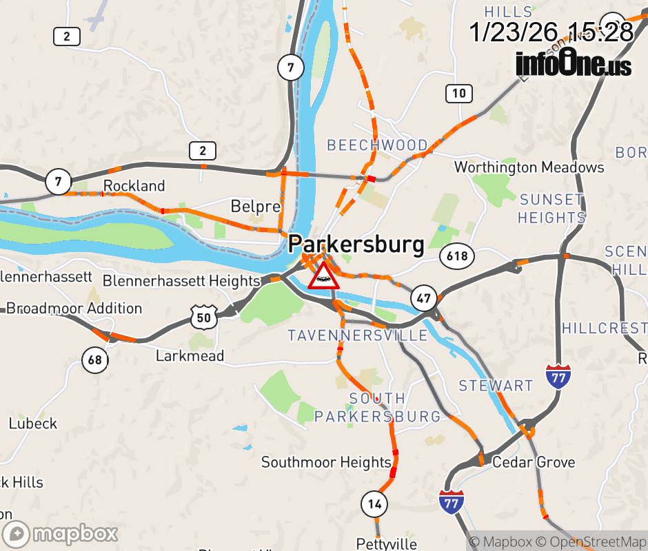 Vehicle Crash on WV-14 (Fifth St) & WV-14 (Green St) in Parkersburg. ![]() |