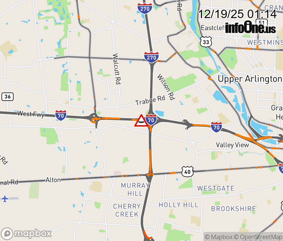 The left lane is blocked on Ramp I-70 East to I-270 South, due to a crash. Updated: Fri 12/19/25 1:14 AM EST ![]() Updated: Fri 12/19/25 1:14 AM EST |