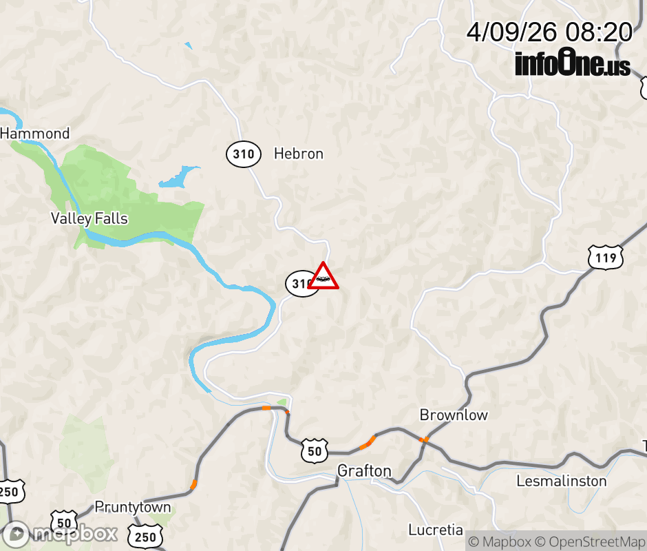 Vehicle Crash on WV-310 (Country Club Rd) & Turner Rd in Grafton. Updated: Thu 4/9/26 8:20 AM EDT ![]() Updated: Thu 4/9/26 8:20 AM EDT |