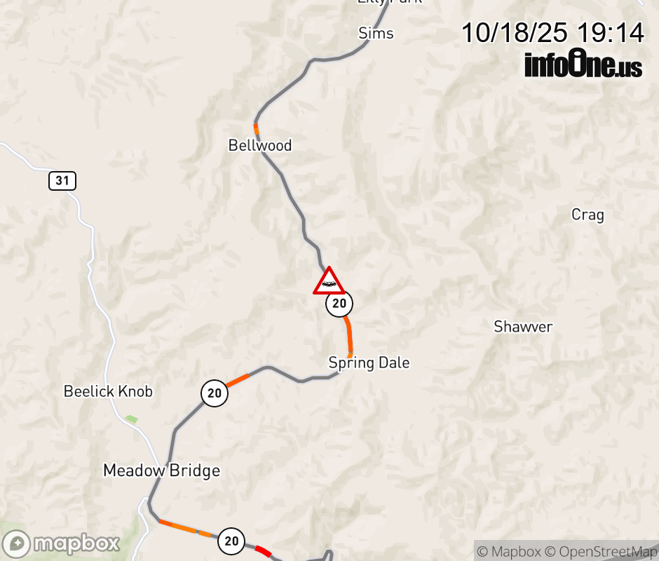 Canceled 10/18/25 9:12 PM Location: WV-20 at MM 5.0, WV Accident.